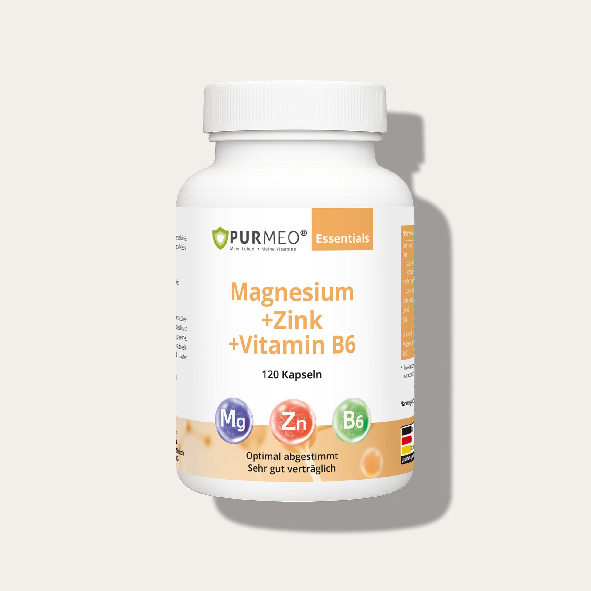 Optimally balanced: The combination of high-quality magnesium, zinc, and vitamin B6 supports your muscle function, energy metabolism, immune system, nerves & regeneration. One capsule daily is enough – vegan, gluten- and lactose-free, made in Germany. Ideal for everyday life, office, sports, or when your body needs more.