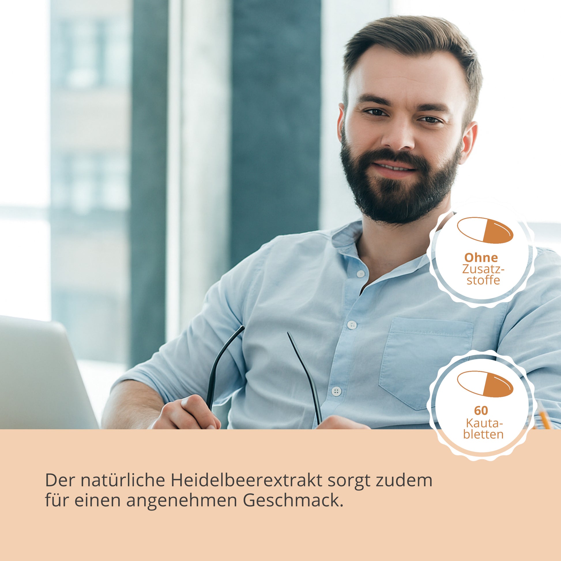 PURMEO Brilliant viene fornito in una comoda e piccola compressa da masticare. L'estratto naturale di mirtillo assicura anche un gusto piacevole.