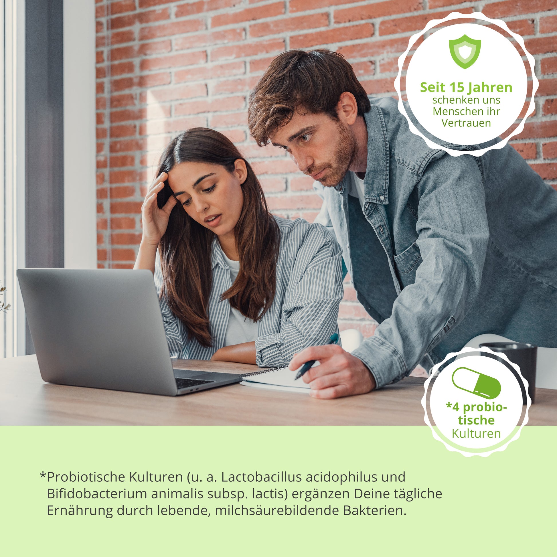 - Quattro culture probiotiche (tra cui Lactobacillus acidophilus & Bifidobacterium animalis subsp. lactis) integrano la tua dieta quotidiana con batteri vivi che producono acido lattico.