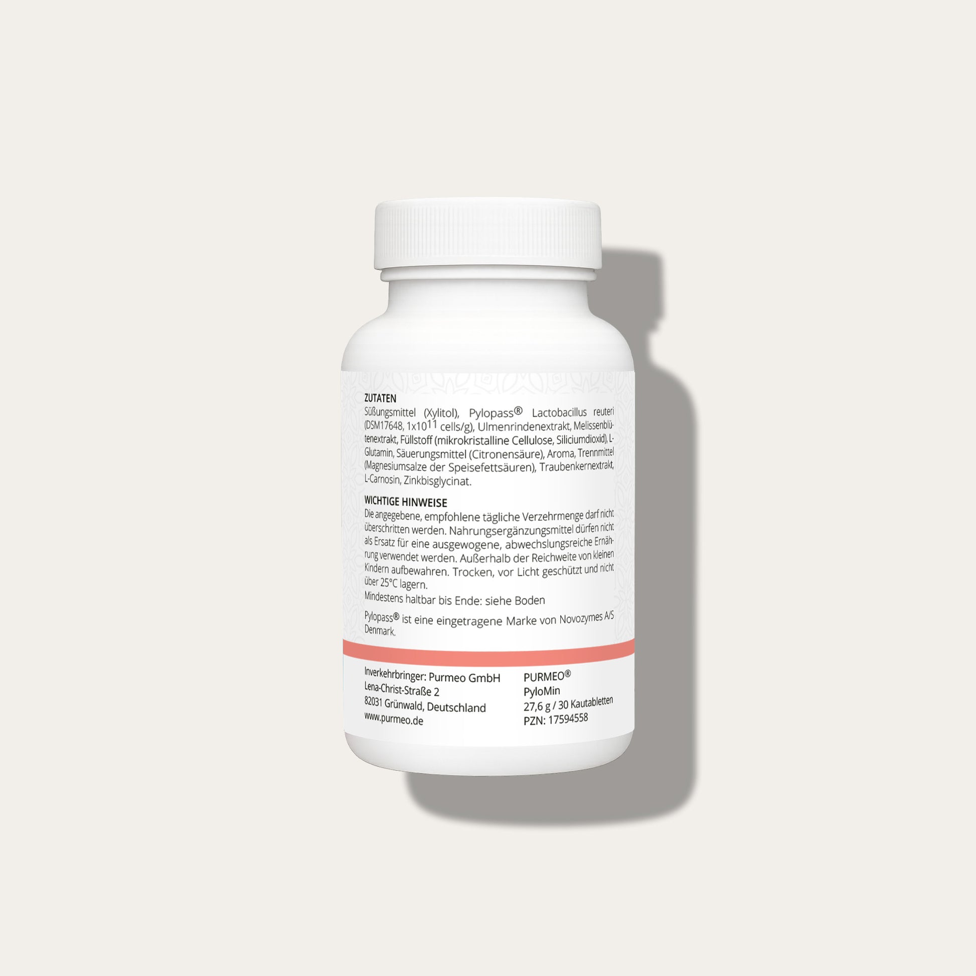 PyloMin è stato sviluppato appositamente per i bambini e contiene il principio attivo brevettato Pylopass® (Lactobacillus reuteri DSM17648), che aiuta specificamente a ridurre Helicobacter pylori nello stomaco. Le compresse masticabili al gusto di fragola, adatte ai bambini, combinano Pylopass® con zinco-carnosina, estratto di corteccia di olmo, estratto di fiori di melissa e L-glutammina – per una mucosa gastrica sana e una sensazione di benessere addominale.